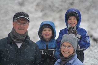 Jen and Andy headed up to the condo Friday night. And it snowed Friday night...so we had some fun Saturday, playing in the snow...! (The boys were VERY excited about the snow!) And it was 3-4 inches of great wet snow...